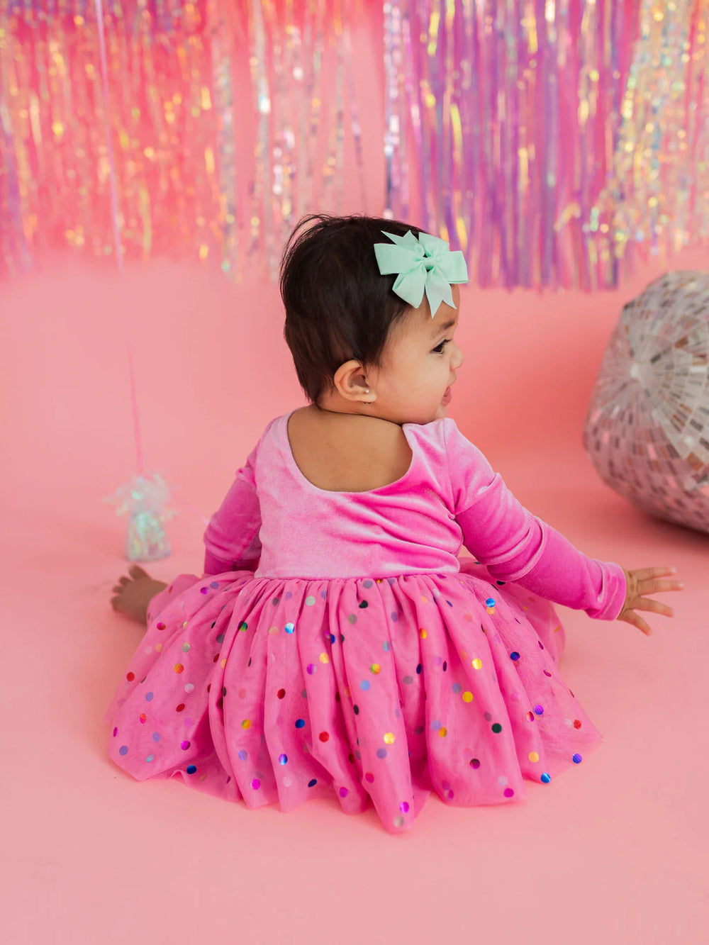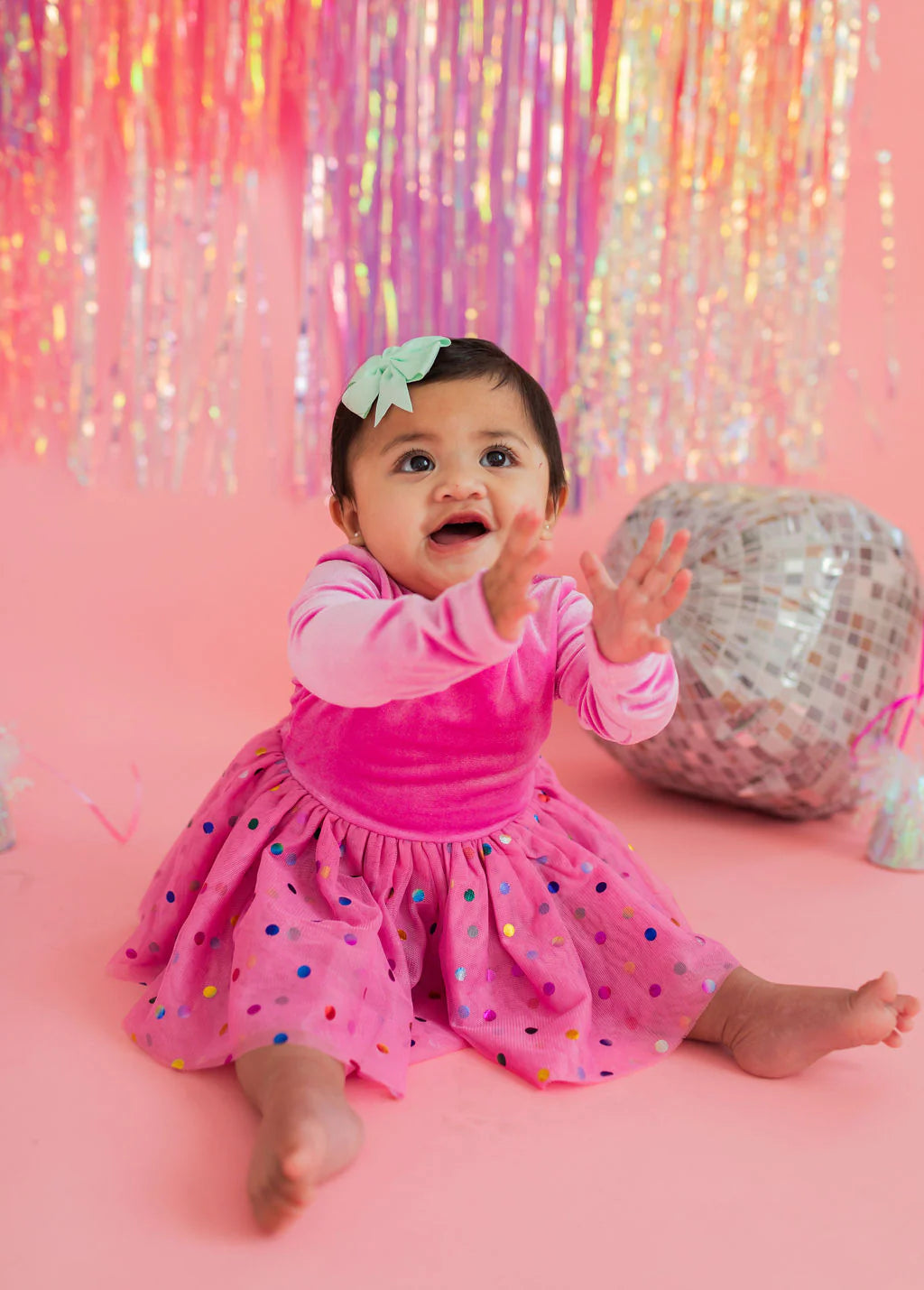 The real star? A 4-layered confetti tulle skirt that bursts with colorful fun, perfect for birthdays, holidays, dress-up, or simply adding a little sparkle to everyday moments. Plus, the 3-snap diaper closure ensures quick and easy changes without missing a beat.