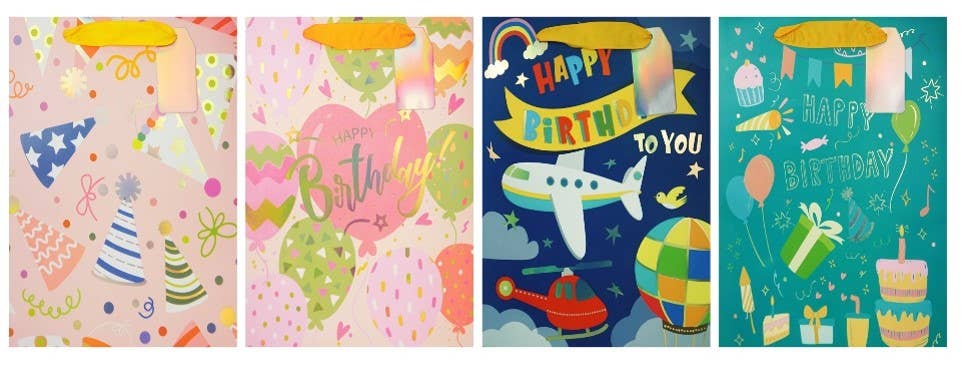 Happy Birthday Gift Bag - Heart & Hat & Airplane 4 styles: Large