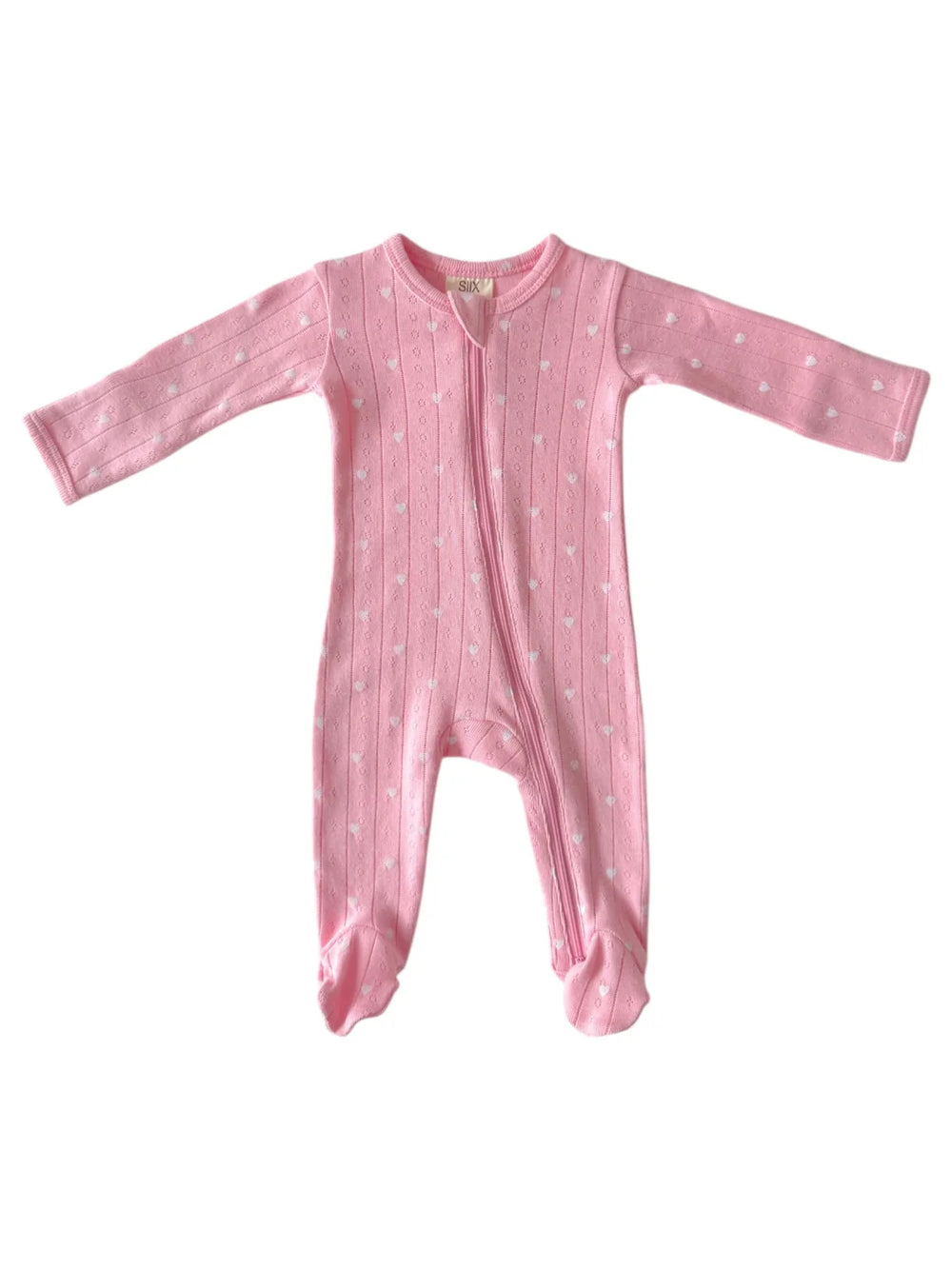 Pink with White Heart - Organic Pointelle 2-Way Zip Footie