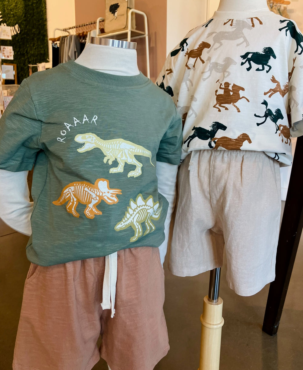 Roar into style with our Dinosaur T-shirt! Featuring a fun and playful design, this shirt is perfect for any Dino-lover