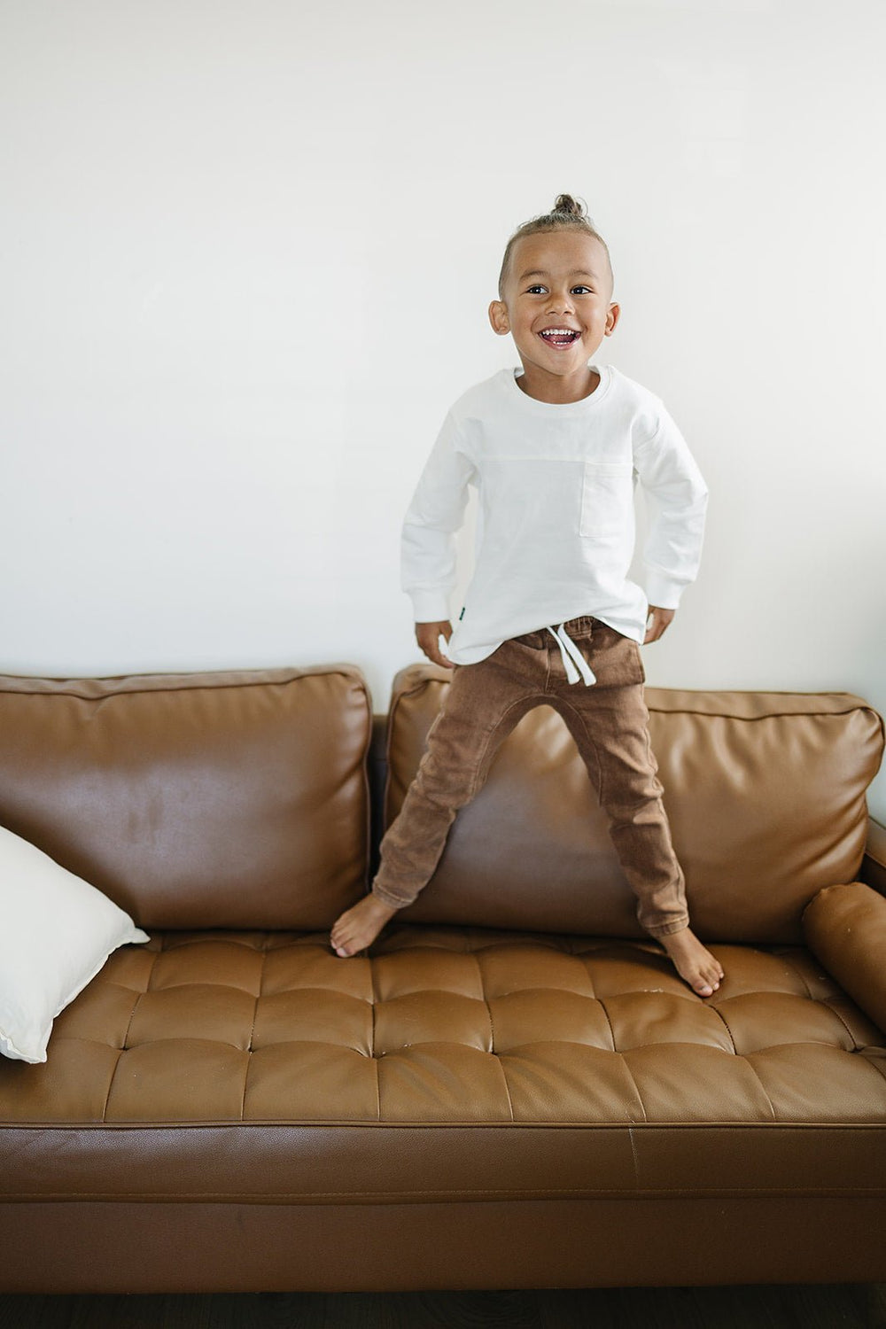 Say goodbye to the days of scratchy denim and hello to these cozy Sawyer Jeans! Made of soft and stretchy denim with a gusseted crotch for maximum movement and an adjustable drawstring and elastic waistband for the perfect fit, these are sure to become your little one’s new favorite!