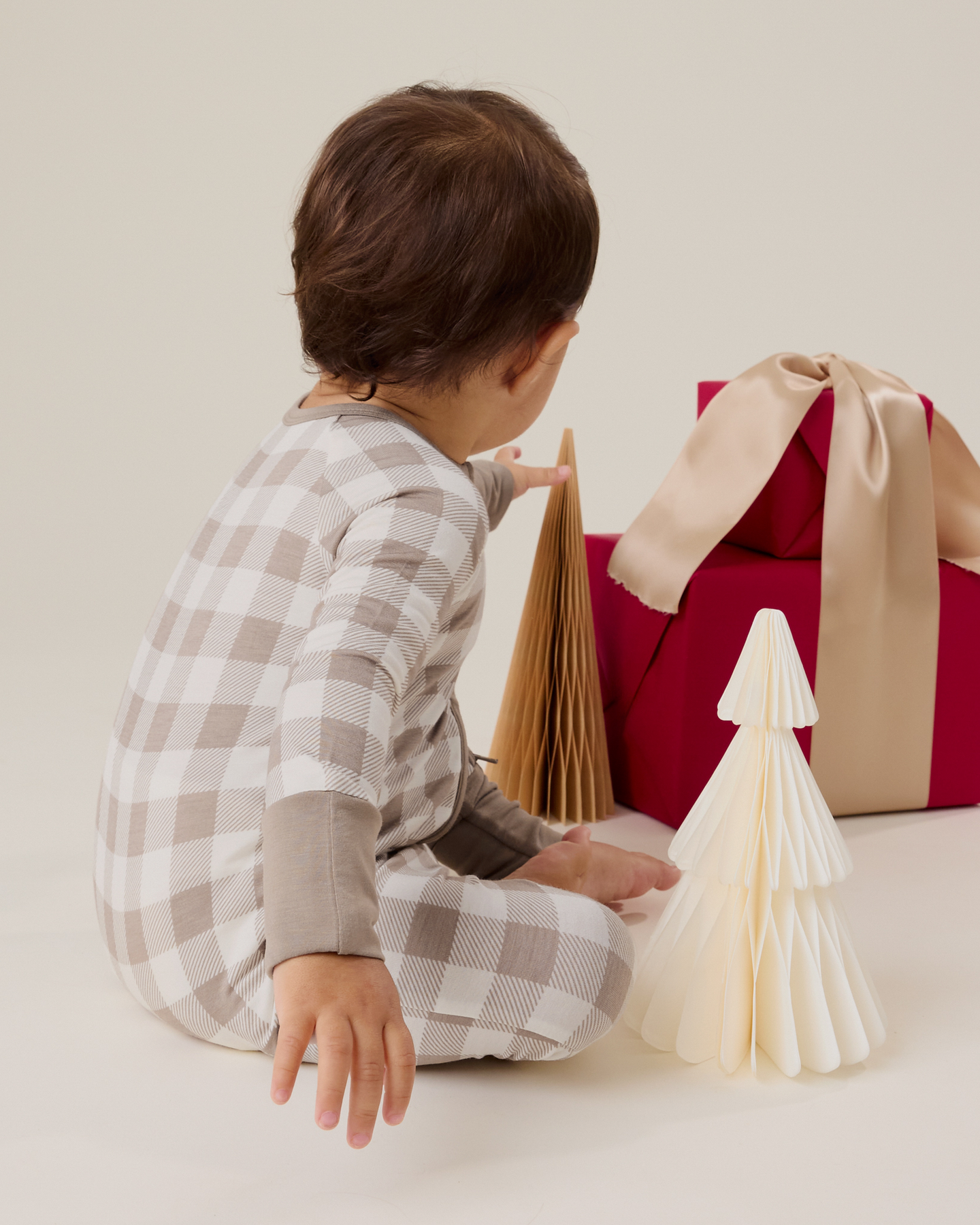 Bamboo Baby Pajama Holiday Print - Taupe Gingham