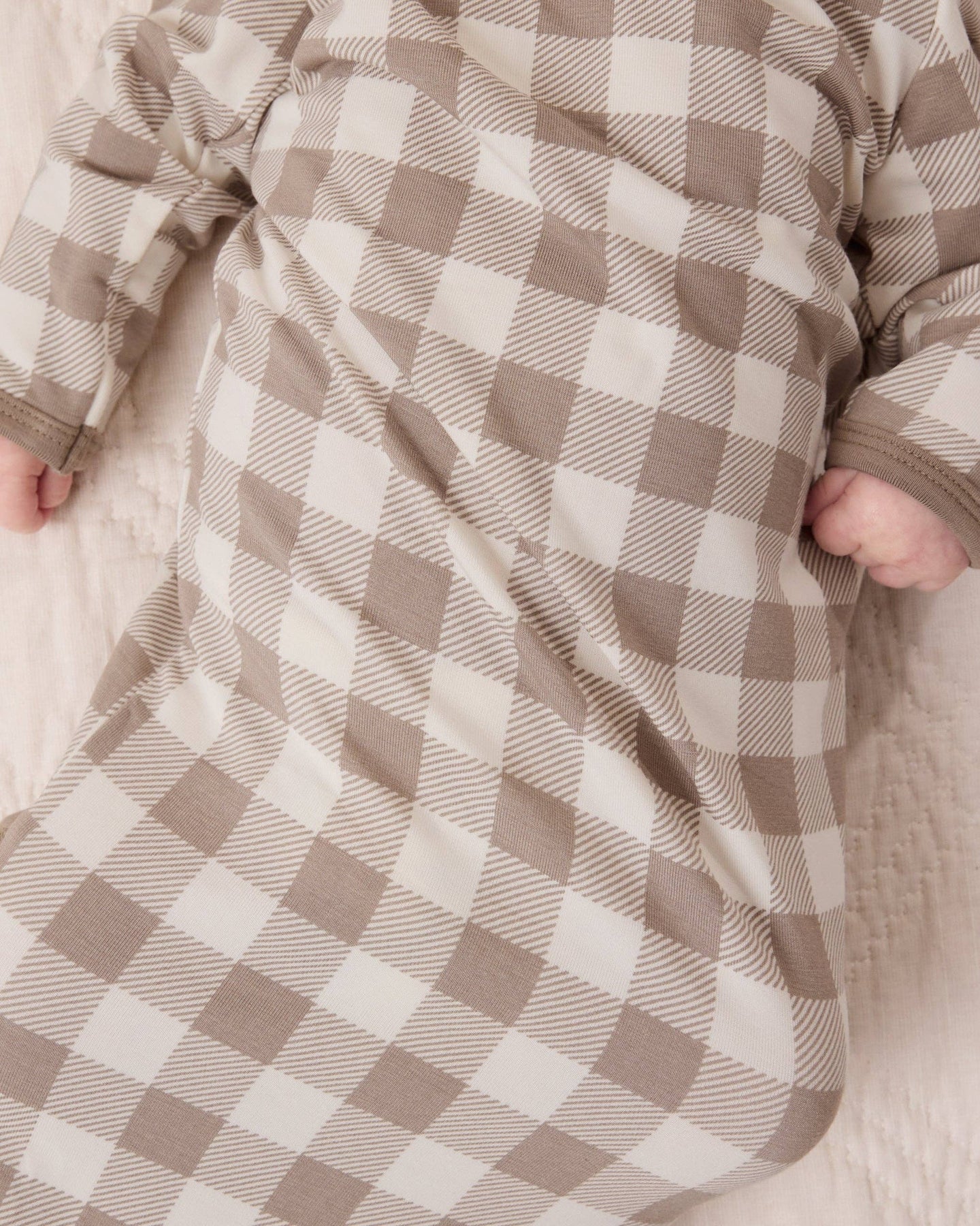 Holiday Colors Cozy Bamboo Baby Gown & Hat - Taupe Gingham